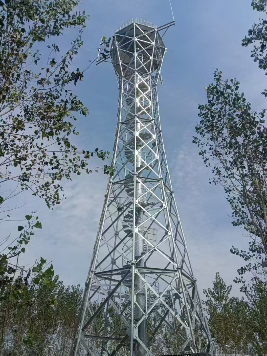 河北颂祎铁塔有限公司,是生产各种铁塔的专业厂家,随着我国改革开放和通信事业蓬勃发展,本公司为设计、制作、安装各种造型的广播电视塔、微波通信塔、移动通信塔、避雷塔、消防训练塔、测风塔、瞭望塔、监控塔、不锈钢装饰塔、钢管独立塔等铁塔。公司拥有国内先进的生产设备、各种检测设备齐全,年产铁塔与各类钢构件5万余吨。